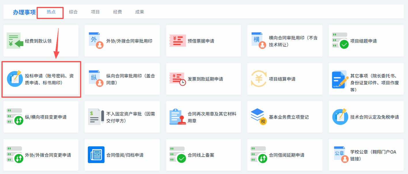 二、办理地址:翱翔门户——科研系统——投标申请(账号密码、资质申请、标书用印)